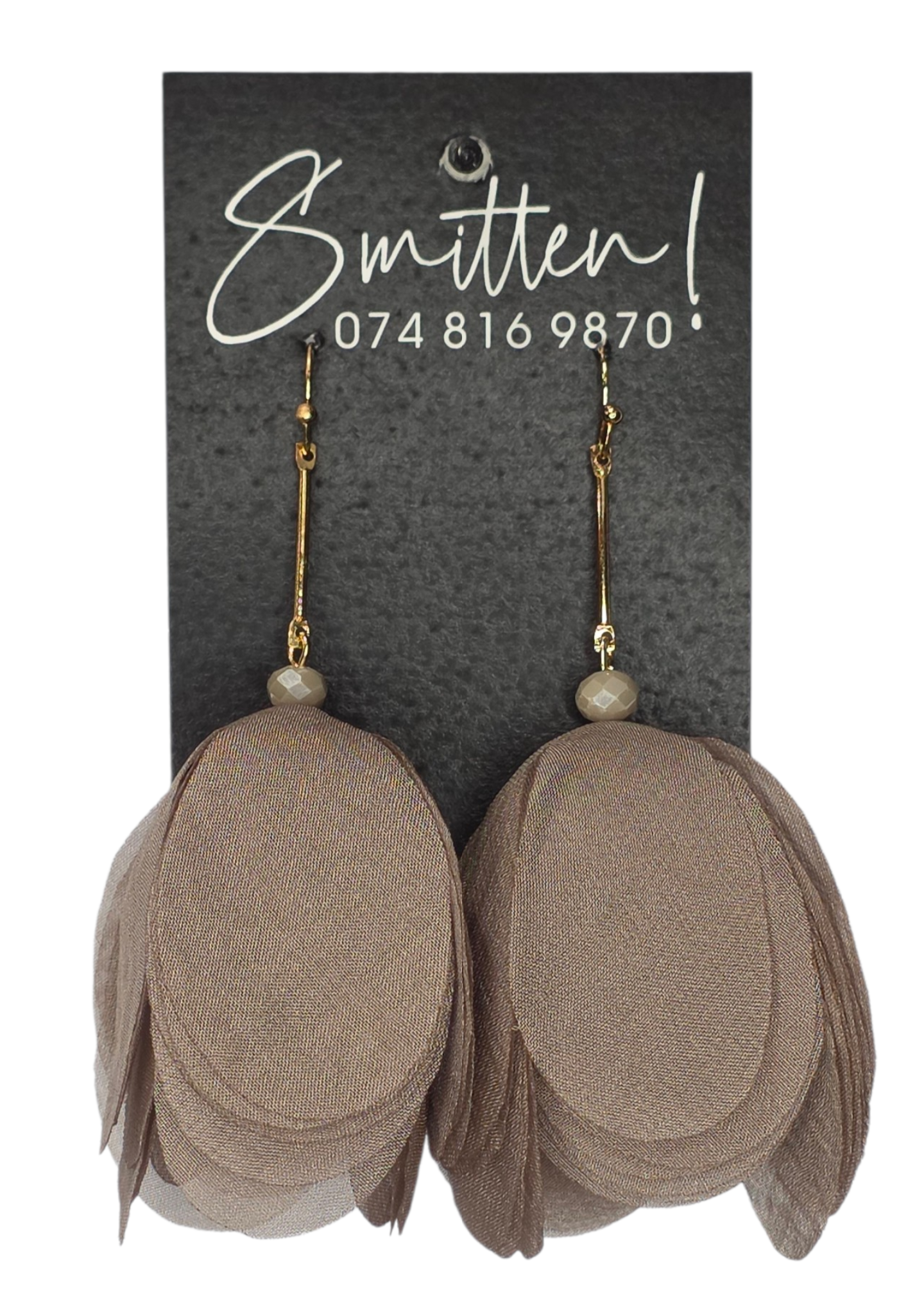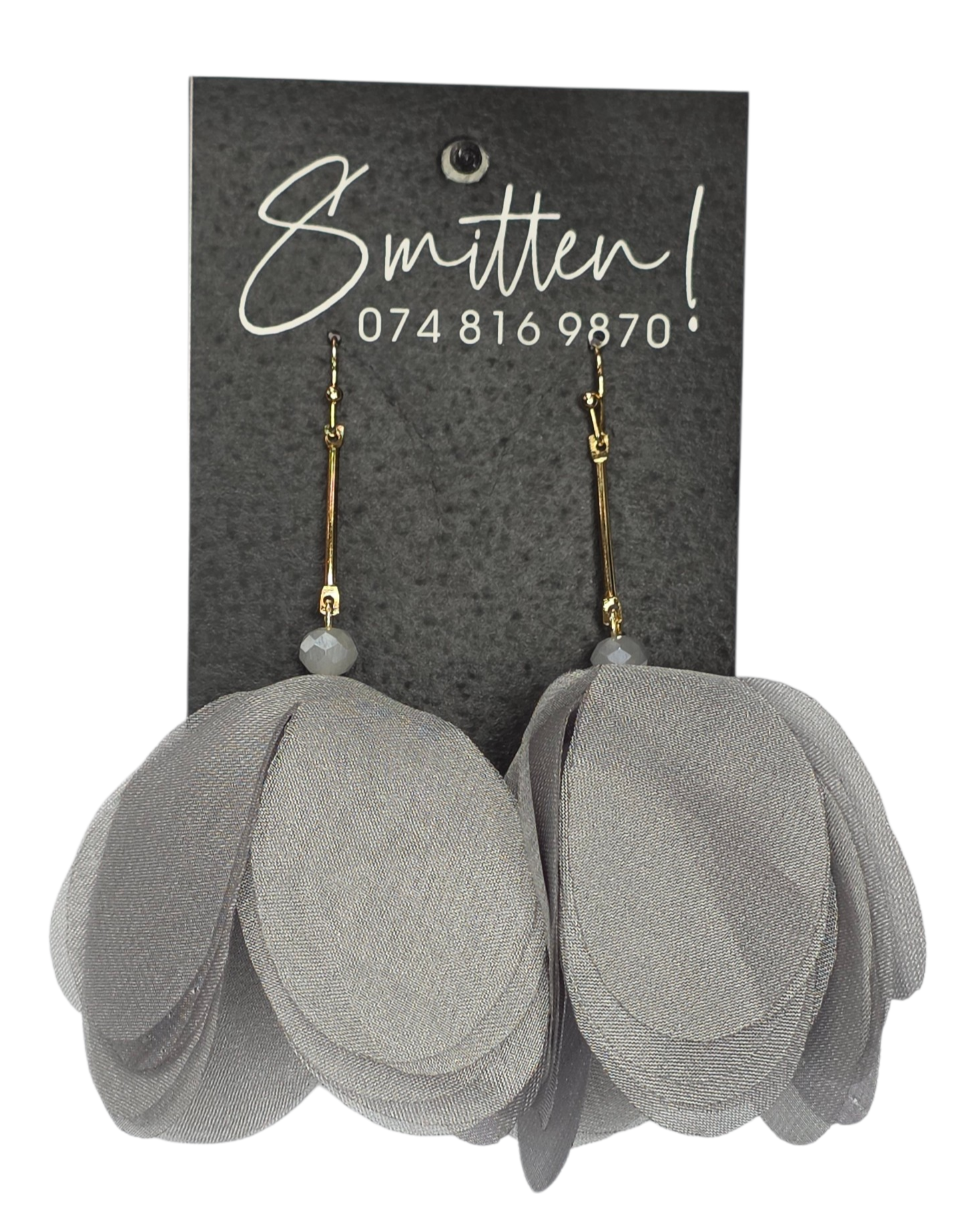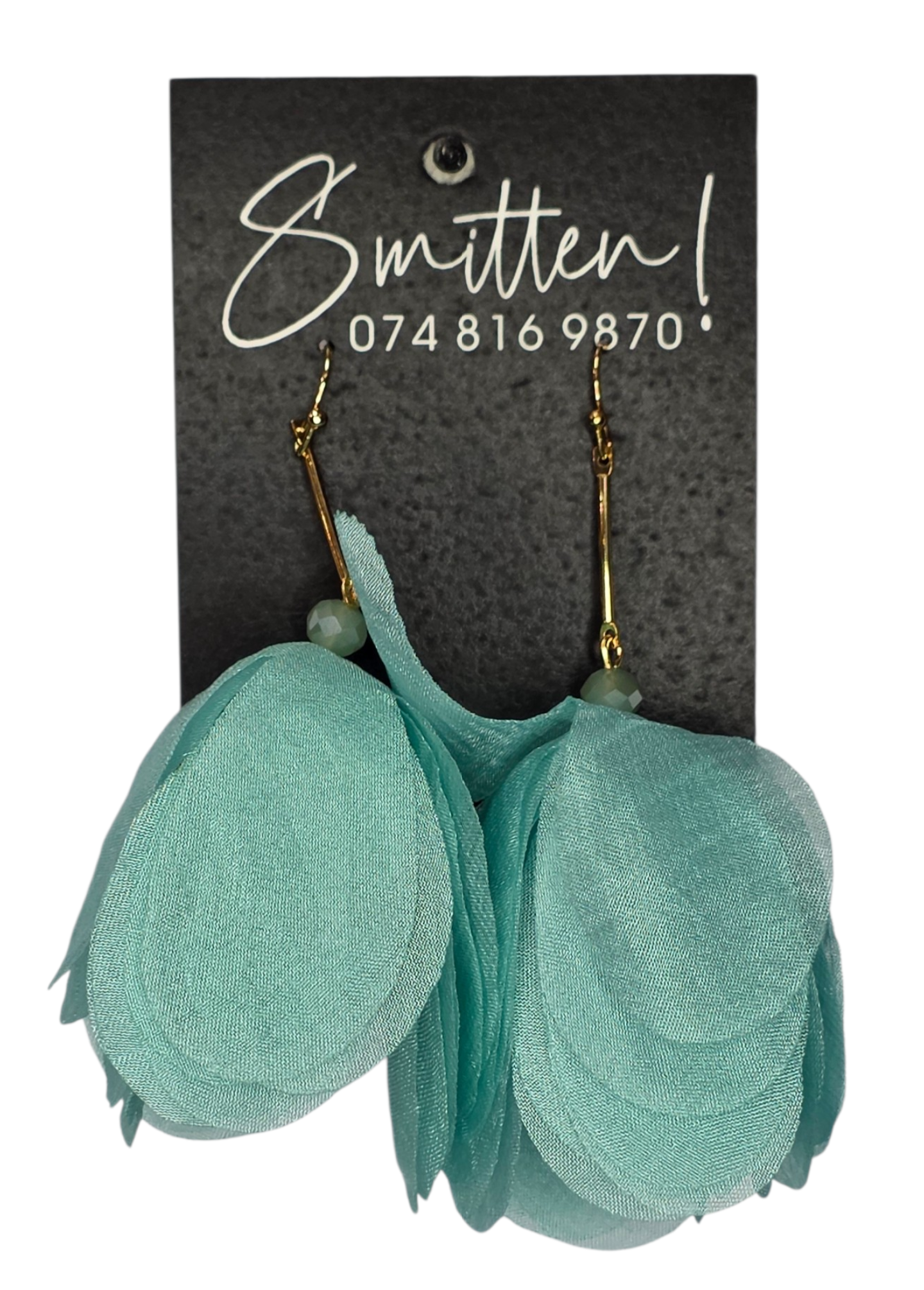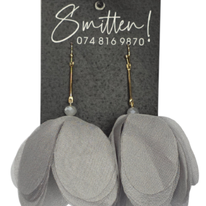 These elegant statement earrings feature layered, different-colored chiffon petals suspended from a gold-toned bar, accented with a faceted glass bead. Their lightweight, floral design creates a soft, romantic look perfect for weddings, parties, or summer outings.