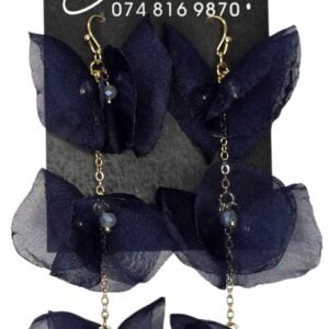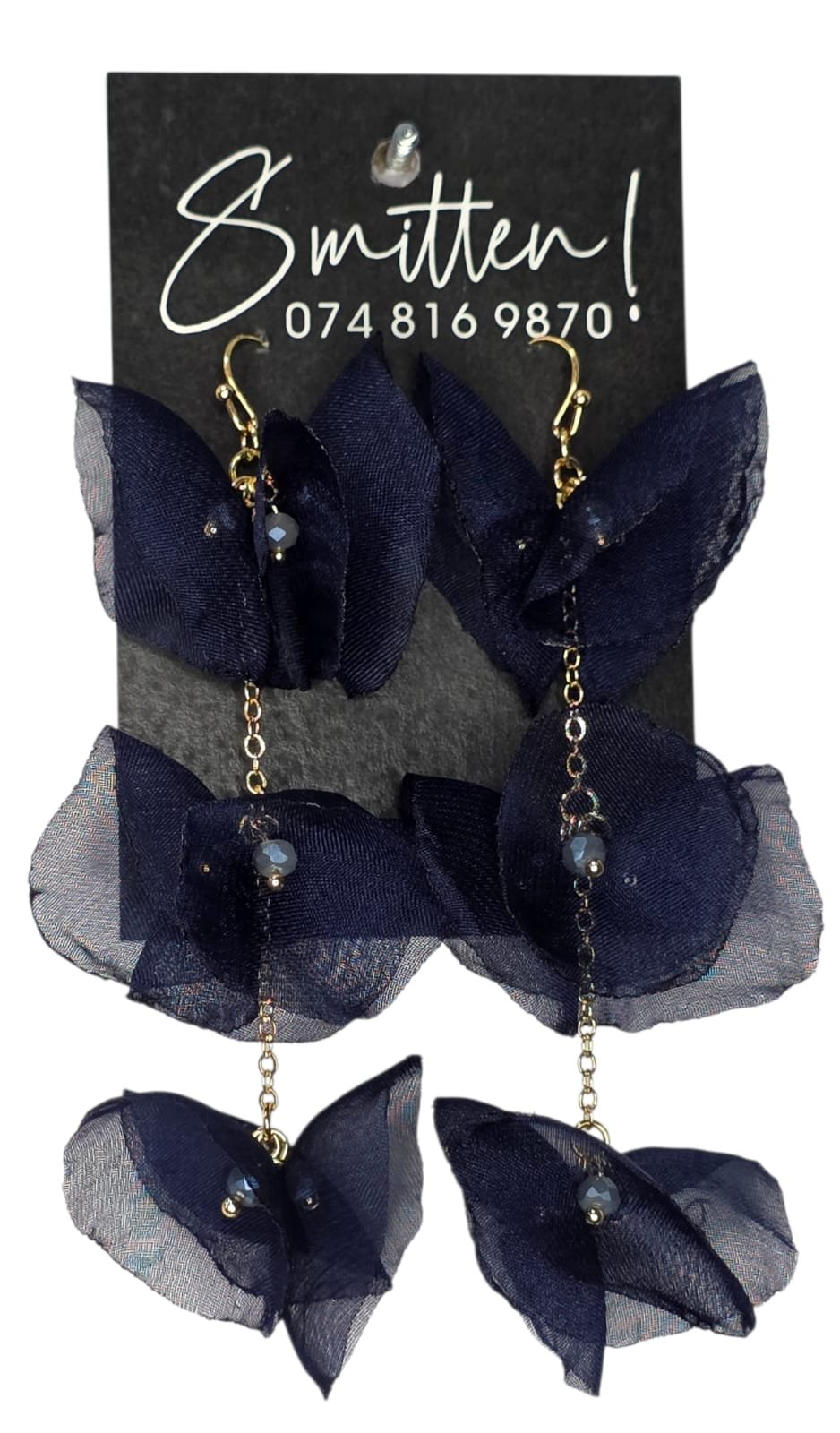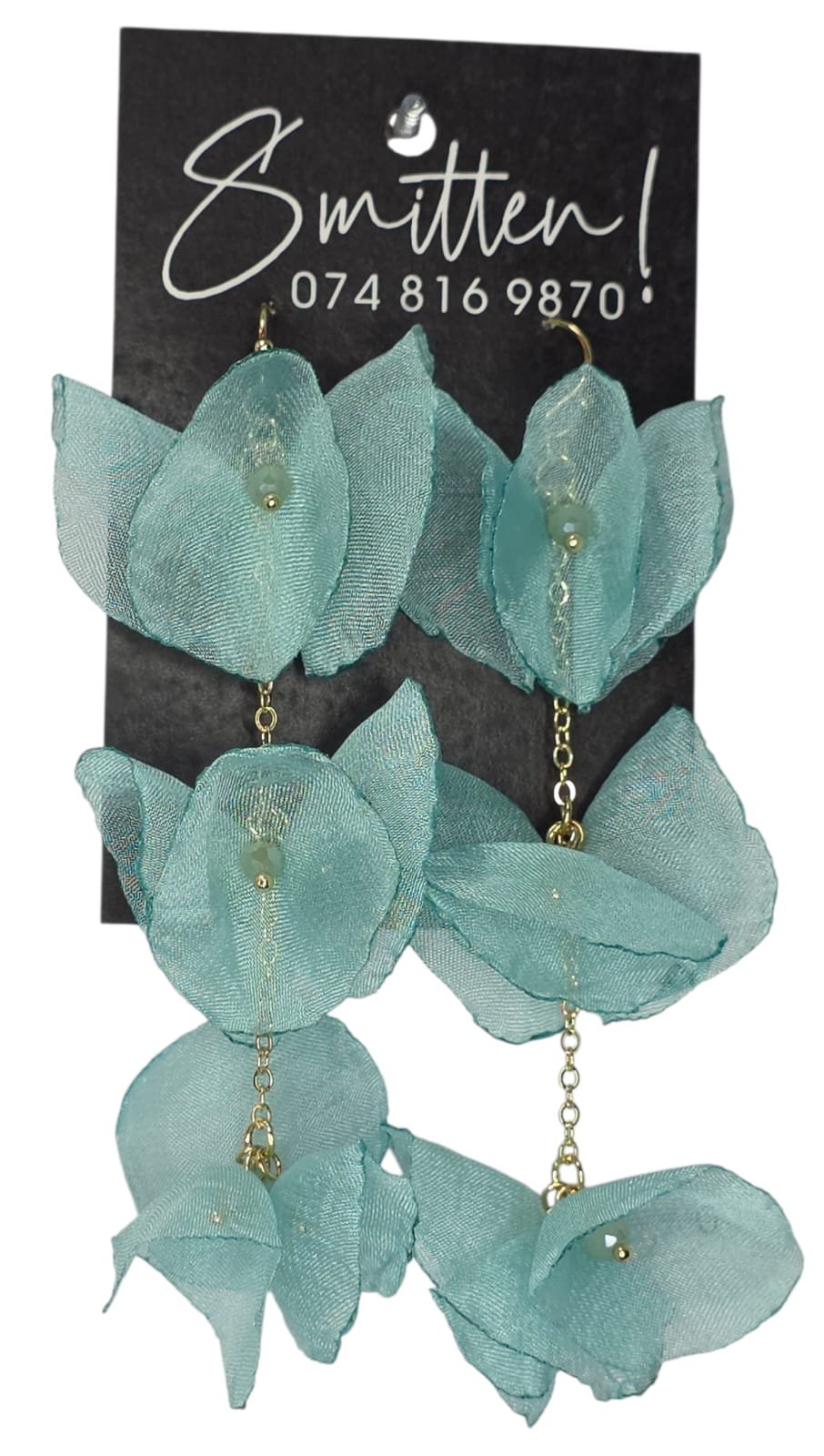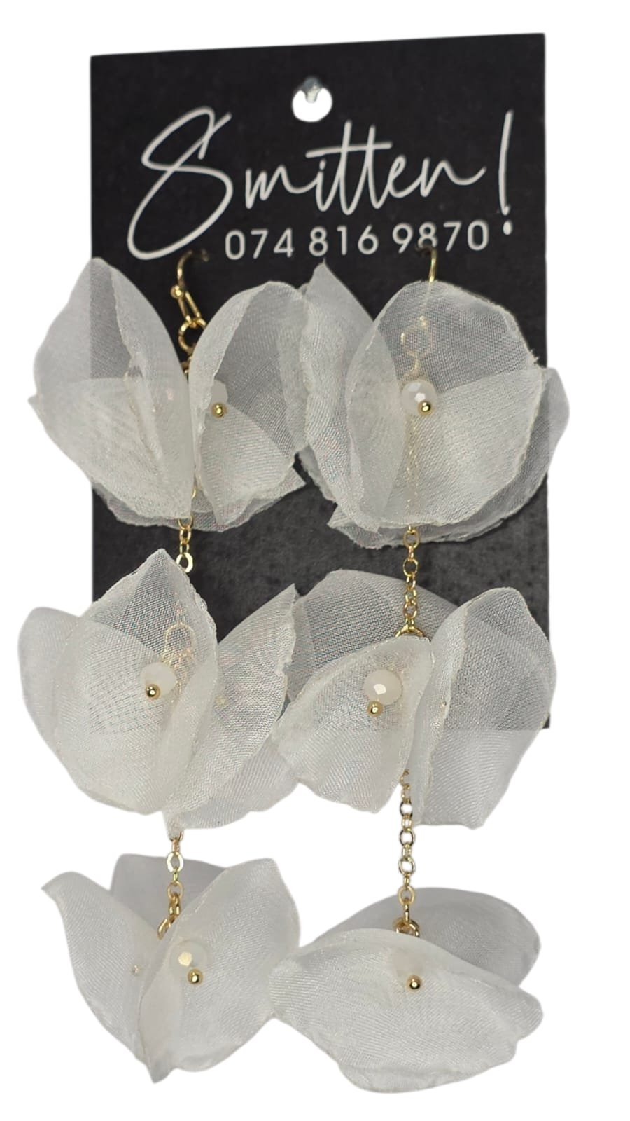 Dangling floral earrings with small beads in center.