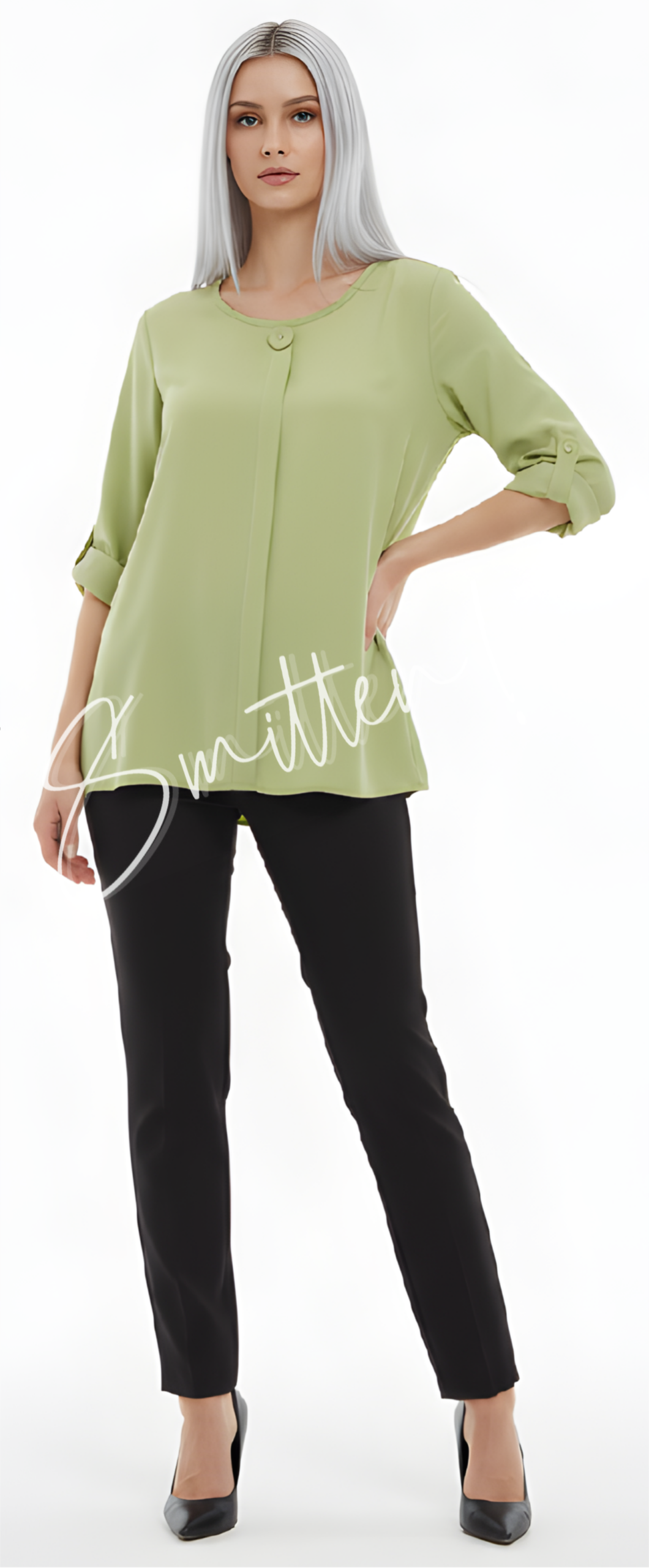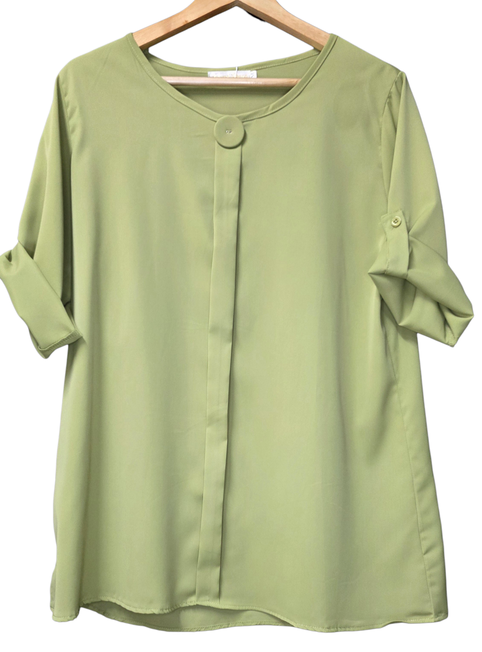 Green Colour Blouse / Top with Button and Pleat Infront