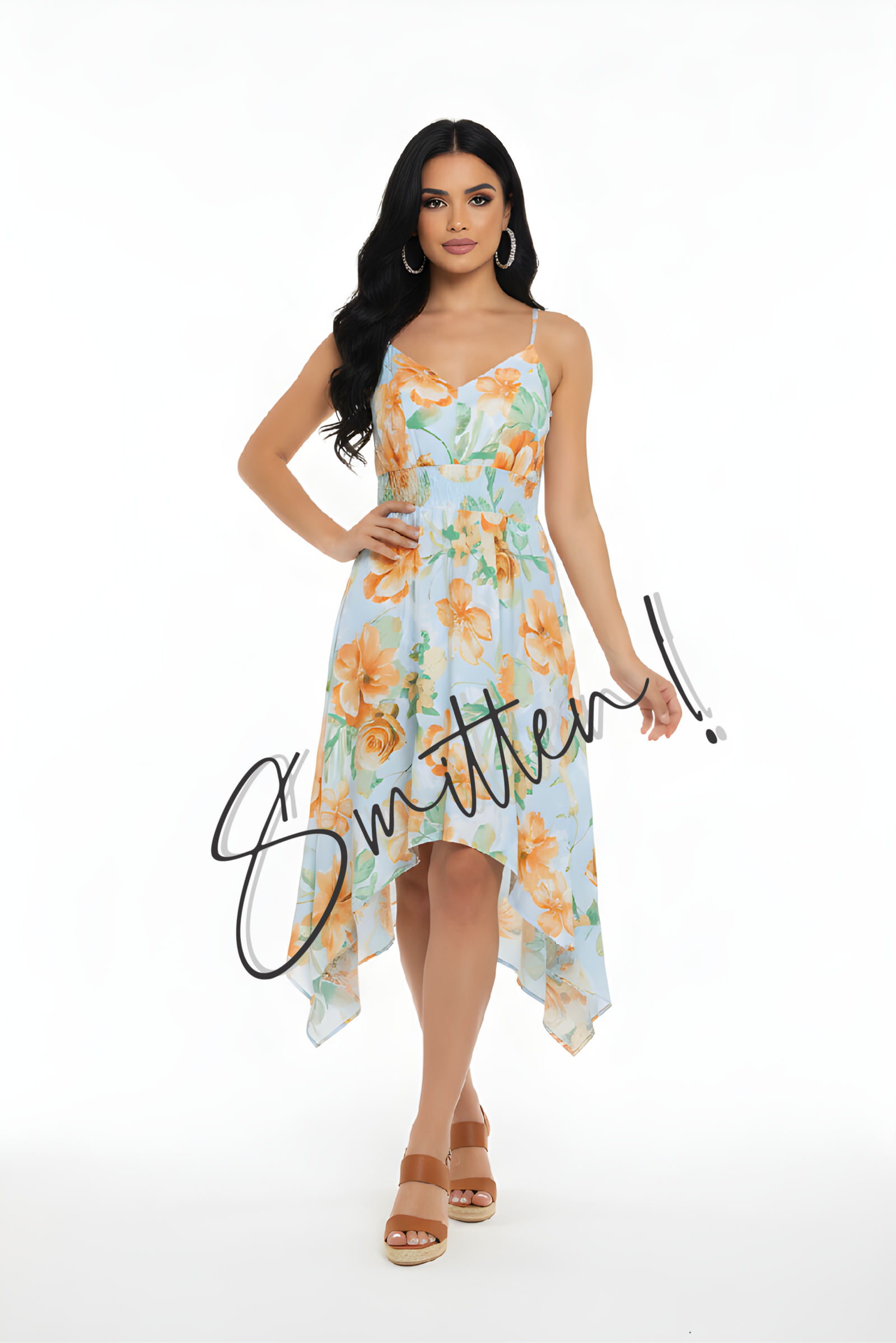 Handkerchief Hem Floral Dress – Orange