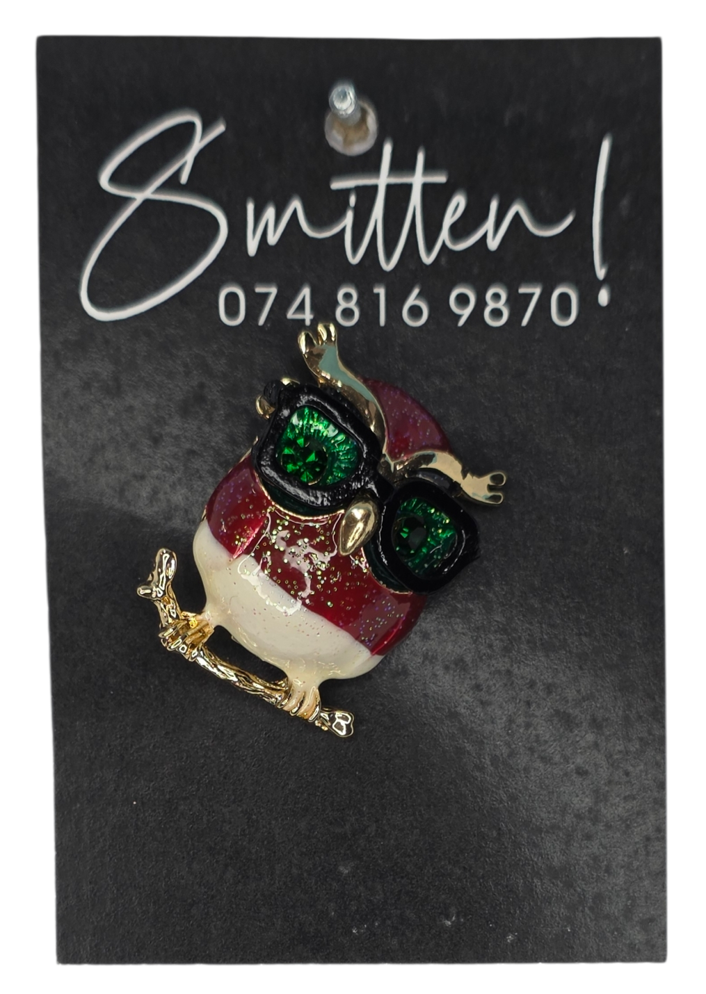 Red Owl Pin Brooch with glasses