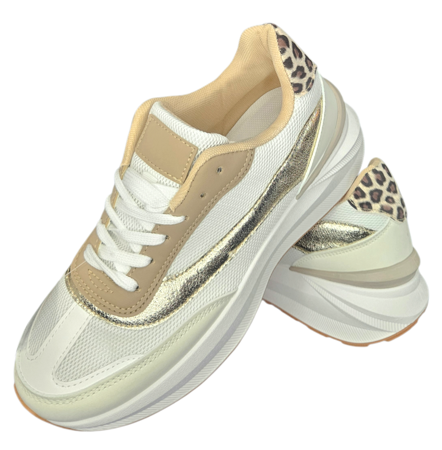 This sneaker has a beautiful gold and animal print inlay. This is a true size