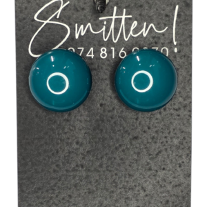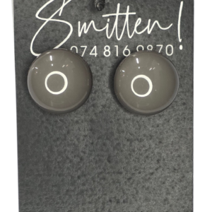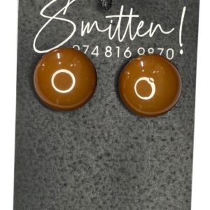 These are round resin stud earrings in different colors. They feature a smooth, high-gloss “balloon” finish that gives them a minimalist and modern aesthetic.