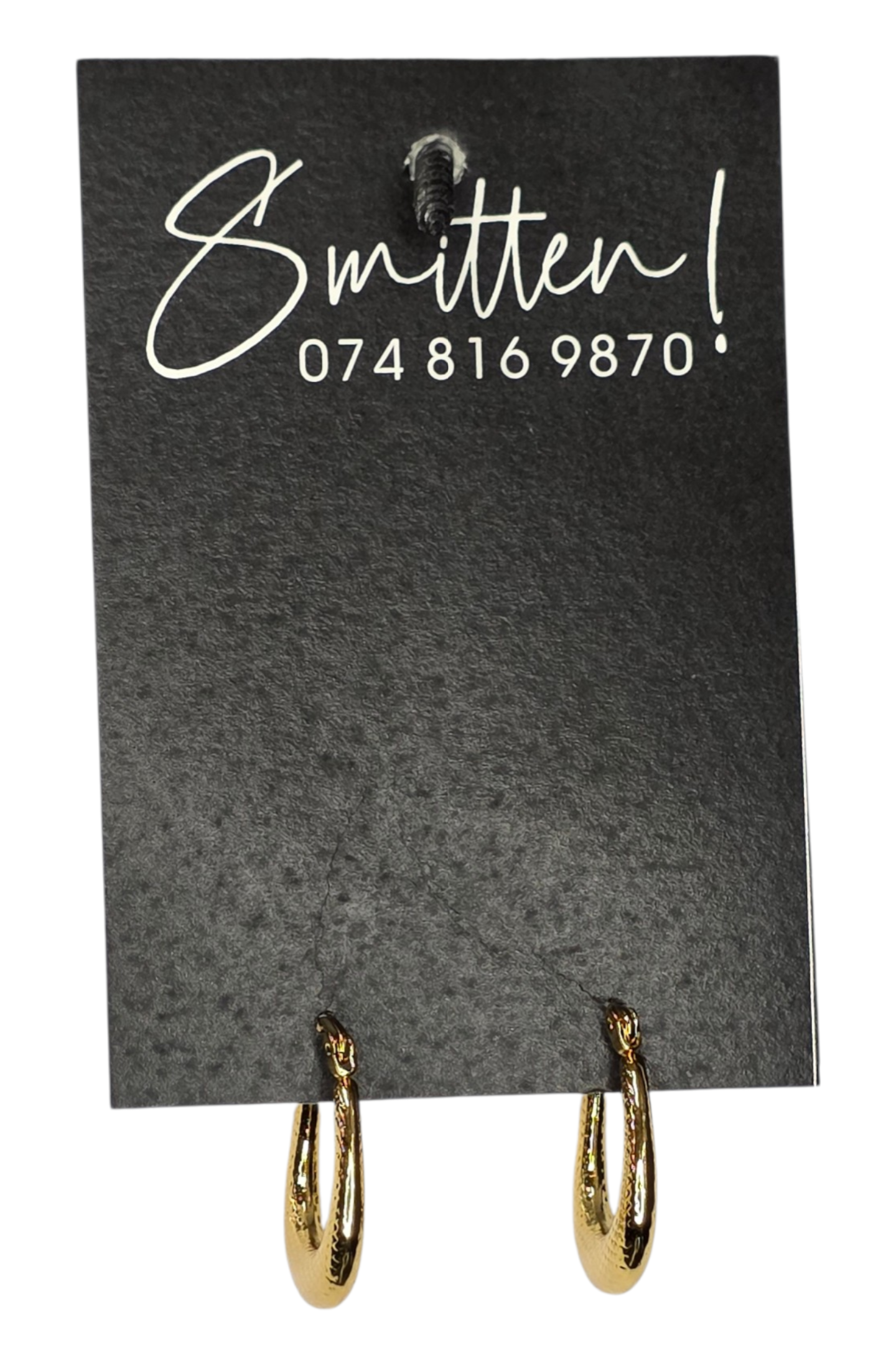 These polished gold-tone oval hoop earrings feature a modern “U-shape” or teardrop silhouette with a tapered design that is thicker at the base.